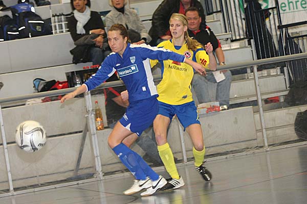 Verkehrte Welt in der Vorrunde: während in Gruppe 1 alles beim Alten blieb, Potsdam die Gruppe dominierte und Valur Reykjavic verdient ins Halbfinale einzog, gewann Djurgarden am zweiten Turniertag keine Partie mehr. Durch den 7:0-Kantersieg von Duisburg im letzten Spiel gegen Gütersloh wurde das Team von Thomas Obliers sogar noch Gruppenerster, punktgleich folgten Bröndby und das Team um Ariane Hingst, Nadine Angerer und Jenny Meier, das überraschend noch in die Platzierungsrunde musste. ![]() ![]() ![]() ![]() ![]() ![]() ![]() ![]() ![]() ![]() ![]() ![]() ![]() ![]() |